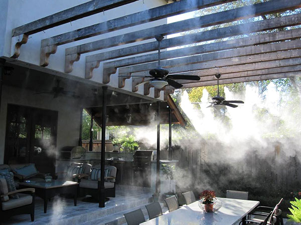 Hệ thống phun sương tại một quán café ngoại cảnh