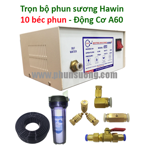 Máy phun sương Hawin A60: là một máy điều hòa không khí, hoạt động dựa trên nguyên tắc nhanh chóng. Nửa sạch sẽ được nén với áp suất cao nhờ các thiết bị đặc biệt, chuyển thành dạng siêu phân tử cỡ mỏng với kích thước siêu lớn, tiếng ồn của khoảnh khắc khí xung quanh, làm cho nó trở nên nhẹ nhàng hơn ngay lập tức. Nhanh nhẹn sương hấp dẫn nhiệt và giảm nhiệt độ môi trường xung quanh từ 5 – 7 o C. Để giảm nhiệt độ trong thời tiết quá nóng vì hiện nay nên cài đặt hệ thống phun sương trước nhà, cửa sổ trước khi vào nhà, hoặc trường hợp sân vườn, thì phun sương là một giải pháp tạo không gian Thoang mát.