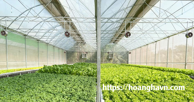 Quạt công nghiệp được sử dụng để cải thiện quá trình quang hợp của cây trồng bằng cách giúp tạo ra gió lớn, giúp hỗ trợ sự trao đổi khí của cây và giảm nhiệt độ trong nhà kính.